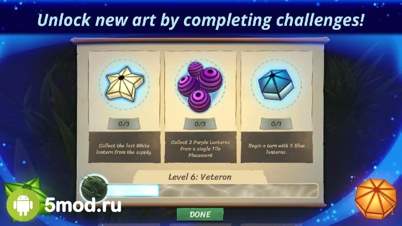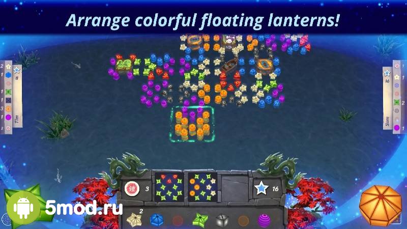 Lanterns: The Harvest Festival - порт на мобильные ещё одной необычной настольной игры. Проект понравится и симпатичным исполнением и детально проработанной механикой. Что обеспечивает участникам увлекательный и интересный геймплей. Они будут иметь дело с расположением церемониальных фонариков на воде так, чтобы были выполнены поставленные задачи, а так же получено максимальное количество очков за правильное комбинирование. Есть возможность опробовать себя в соперничестве и с реальными игроками и с ИИ. Что помогает не иметь проблем с поиском оппонентов для того, чтобы начать играть.