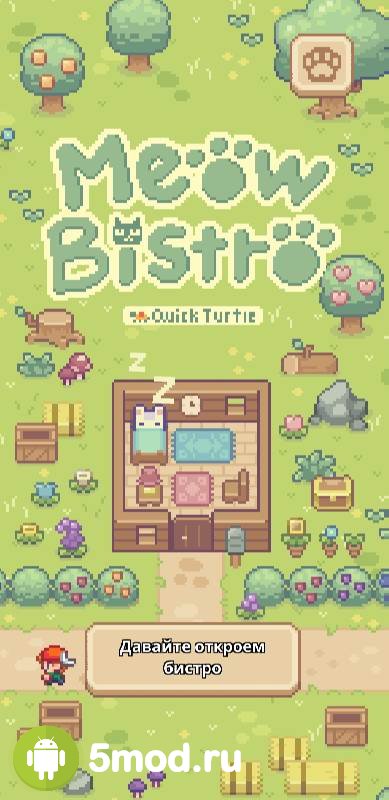 Meow Bistro! - пиксельно-симпатичный проект от QuickTurtle в котором игроки попробуют себя в роли управляющего и шеф-повара в кошачьем бистро. Они должны закупать только самые свежие продукты и ингредиенты, подготавливать их к моменту открытия, а после быстро готовить по пожеланию клиентов. Следует оптимизировать все процессы и собственную последовательность действий. Чтобы успевать обслуживать как можно больше посетителей. Что положительно скажется на финансовой составляющей, а так же на возможностях по улучшению и модернизации заведения и всего, что так или иначе связано с ним.