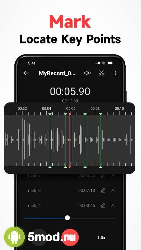 Voice Recorder & Voice Memos - приложение-диктофон, что станет отличным вариантом при выборе подходящего для пользователя ПО. Проект понравится своими качествами, свойствами и функциями. А так же комфортным управлением обеспечивающим быстрое включение и точность действий одной рукой. Отличное качество звука, настройки шумоподавления, битрейта, встроенный редактор, система маркеров прямо во время записи для ускорения последующего разбора, а так же многое другое и делает программу закономерно привлекательным кандидатом для постоянного применения. Человеку, что нуждается в подобном точно стоит лично протестировать её.