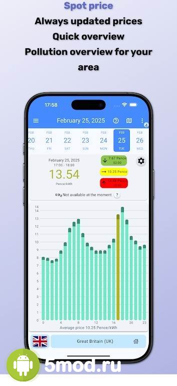Spot price (Electricity price) - приложение в первую очередь для жителей европейских стран, что хотят получить помощника и наставника в сфере работы со спотовой продажей электроэнергии. Проект обеспечивает информационную поддержку, снабжая актуальными ценами, а так же постоянно развивается. Тем самым приобретая новые функции и инструменты. Что делают ПО ещё более полезной для аудитории понявшей преимущества данного продукта. Есть и система уведомлений, возможность самостоятельной настройки цветовых решений и указателей для лучшего визуального восприятия и масса прочих факторов, что так же будут полезны.