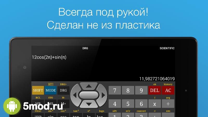 Scientific Calculator Pro - научный калькулятор, что привлекает внимание пользователей и удерживает уже знакомых с ним людей за счёт удобства применения и наглядности, наличия разнообразия режимов, а так же сохранения всех полученных данных для последующего использования. Понравится и клавиатура. Которая обеспечивает оперативное внесение параметров, составления тригонометрических функций, продолжительных уравнений и всего прочего, что обычно и становится причиной недовольства людей взявшихся за работу. Здесь же всё намного легче, быстрее и понятнее для людей любого уровня знаний и опыта в подобном ПО.