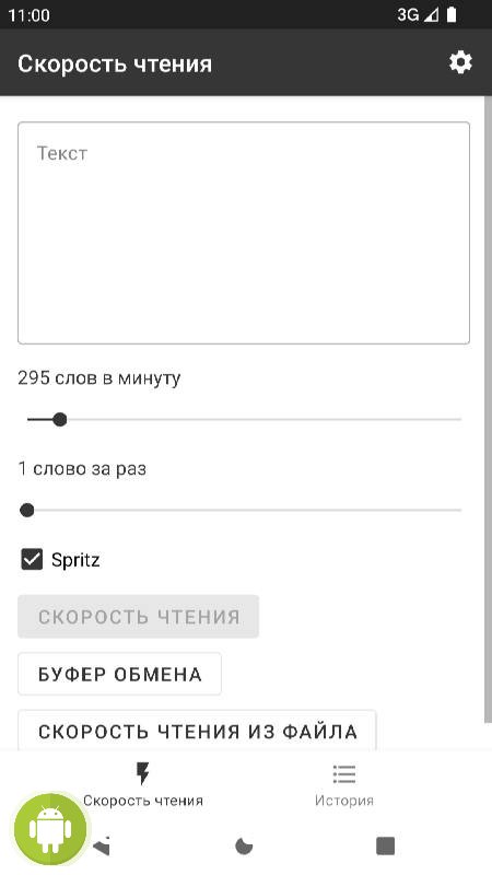 Speed Reader for Speed Reading - приложение для пользователей желающих существенно прокачать навыки чтения. Особенно сосредоточив своё внимание на скорости и точности. Программа предлагает механику благодаря которой можно действительно заметно повысить результативность. Достигнув очень впечатляющих показателей. Понравится и система настройки процессов, различные режимы, загрузка собственных текстов, создание тестовых испытаний для себя, удобное управление, визуальные изменения для лучшего восприятия, указание ударения и так далее. Что и делает программу одной из лучших в околообразовательном сегменте.