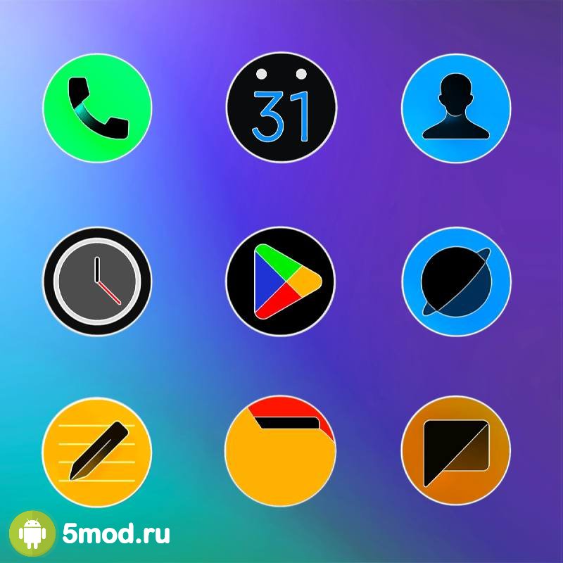 MIUl Circle Fluo - Icon Pack - проект по персонализации от Cris87. Что довольно быстро отслеживается в общем виде и дизайне элементов. Представленная коллекция предлагает весьма и весьма полезное приобретение для фанатов автора, а так же для тех кто хочет расширить серию проектов для людей стремящихся иметь при себе всё необходимое для быстрого перестроения рабочего стола по нужным им визуальным критериям и качествам. И данный пакет является прекрасным способом справиться с этой задачей. Яркая палитра, простота установки, поддержка широкого списка лаунчеров и многое другое понравится ищущим что-то подобное.