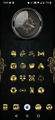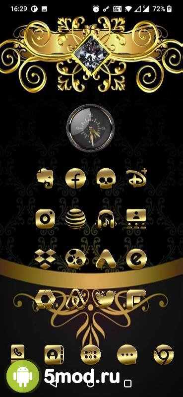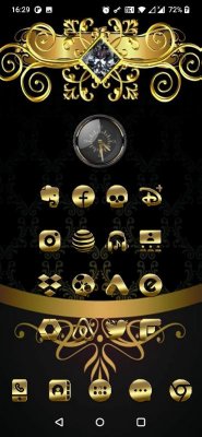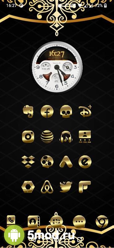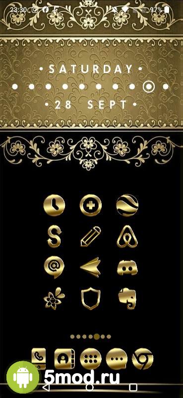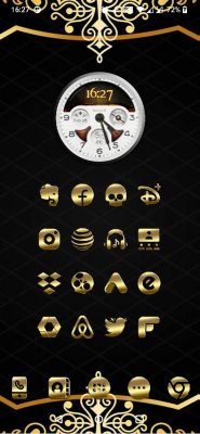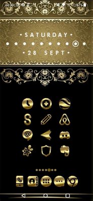 Gold-PD Icon Pack - приложение по персонализации для фанатов не просто смены иконок на рабочем столе, а максимально "дорогого" исполнения. Им предлагаются значки с текстурой полированного золота. Огромное количество элементов, наличие альтернативных вариантов, регулярные обновления с пополнением ассортимента, набор обоев подходящих по палитре и стилю, различные дополнительные механизмы, поддержка динамического календаря, работа с большим разнообразием лаунчеров и высокое качество делают представленную коллекцию очень привлекательным выбором для всех, кто хочет получить действительно выделяющийся вариант.