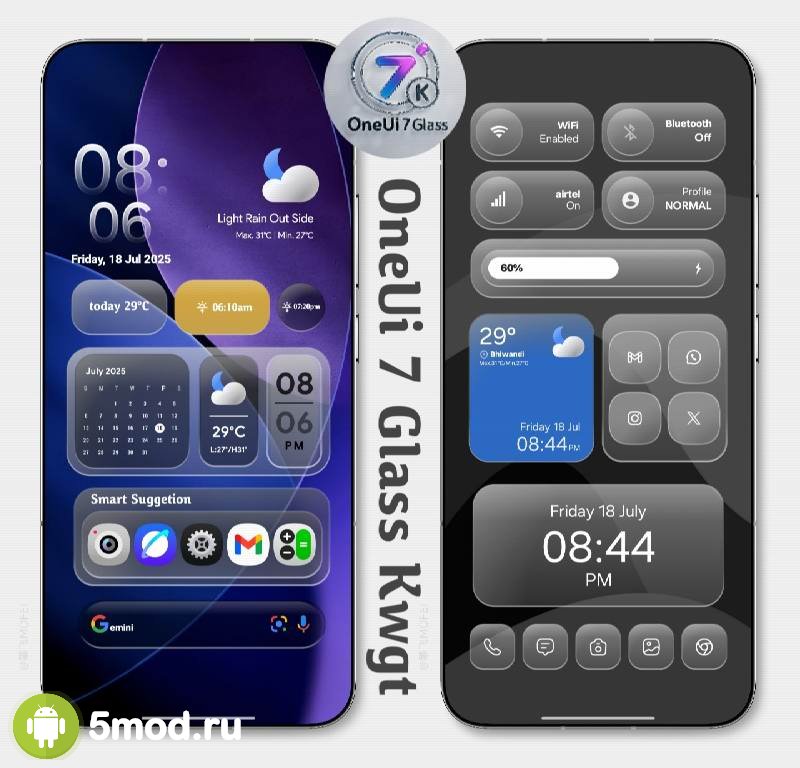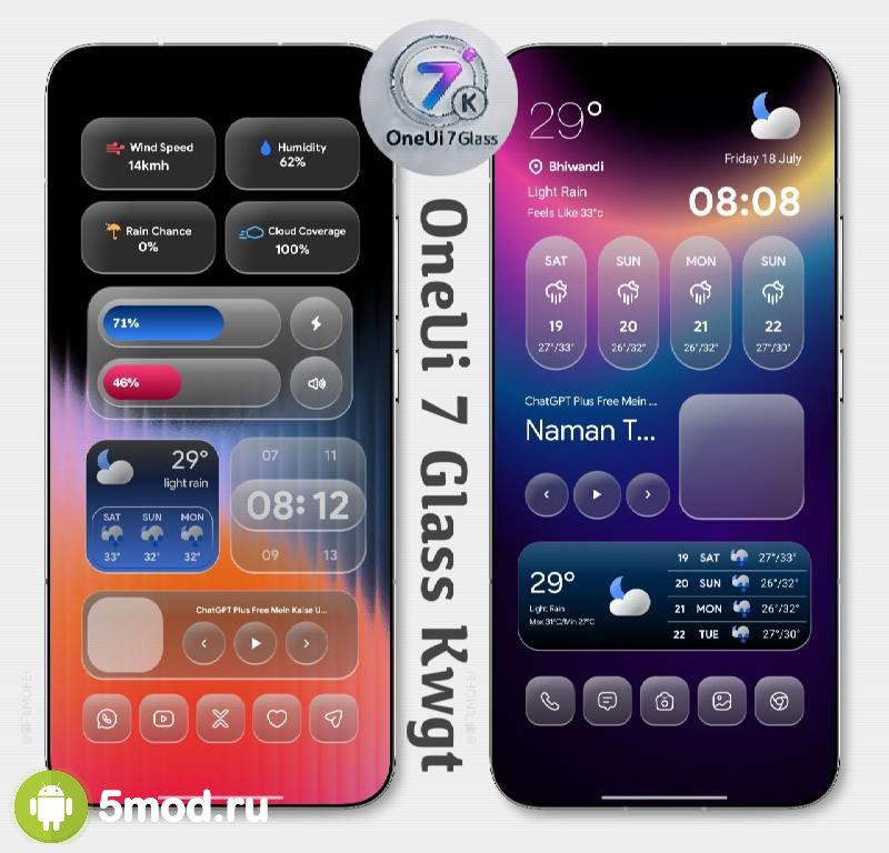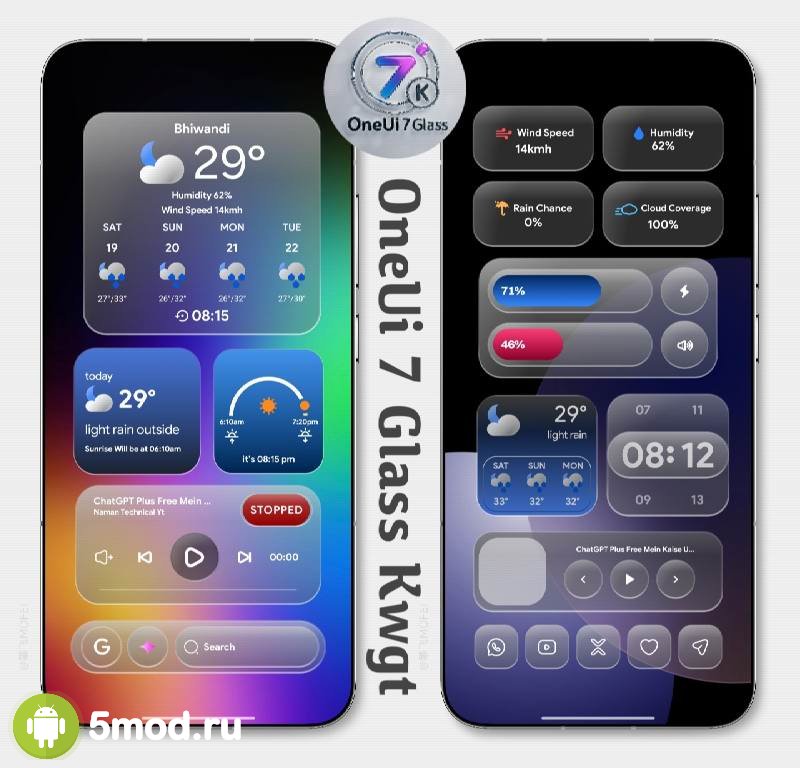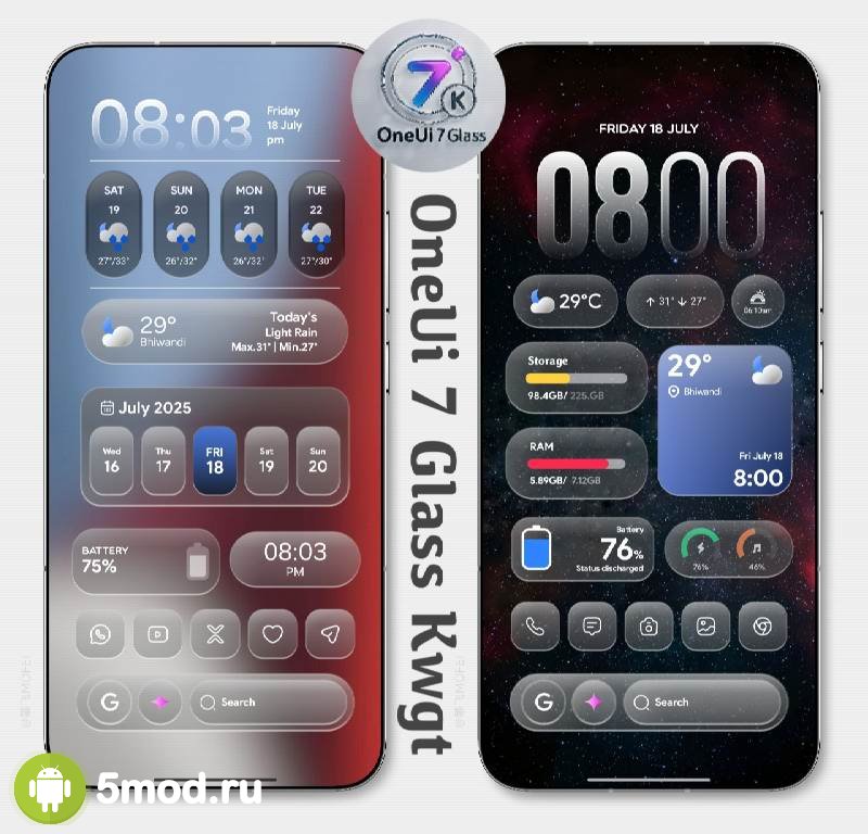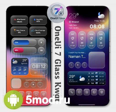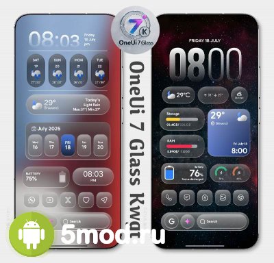 OneUi 7 Glass Kwgt - коллекция красивых, стильных и оригинальных виджетов для рабочего стола. Для беспроблемной установки потребуется ряд базовых программ. Пользователи насладятся очень качественными работами, упором на прозрачность и "стеклянность" текстур, большим разнообразием, удобством настройки, повышением комфорта управления и функционалом, а так многими другими факторами. Что и делают продукт и его содержимое крайне притягательным выбором для любого поклонника персонализации, обновления, улучшения и преображения. Фанатам точно не стоит пропускать мимо себя подобную возможность.