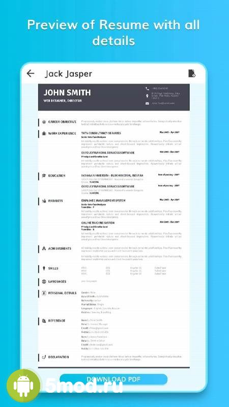 Скачать CV: Professional Resume Maker 1.10 Mod (Premium) взлом бесплатно