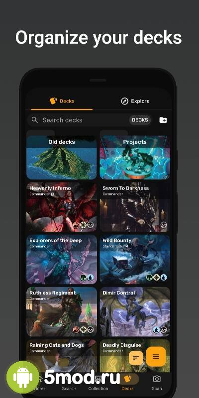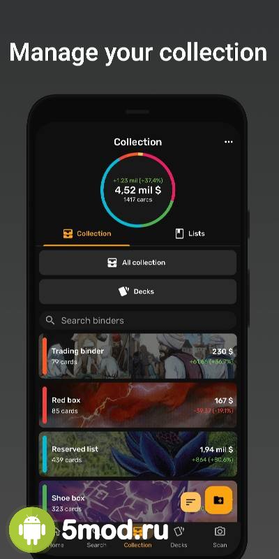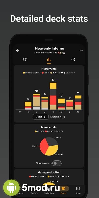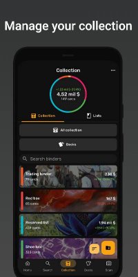 ManaBox - вспомогательное приложение тире клиент для поклонников ККИ "Magic: The Gathering". Программа обеспечивает сопровождение, помощь, а так же массу полезной информации из вселенной полюбившегося развлечения. Особенно ПО пригодится для тех, кто только начал знакомиться с этим миром и ещё мало, что понимает. Продукт познакомит их с правилами, с ЛОРом, интересными фактами, а так же с самими картами и теми, кто на них изображён. Понимание этого позволит намного более детально и тонко чувствовать все особенности. Что поможет начать правильно формировать свои колоды под те или иные тактики поведения в партиях против оппонентов.