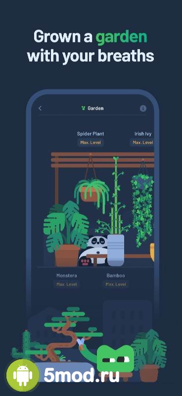 Breatho: Calm Stress & Anxiety - симпатичное и нестандартное приложение для желающих научиться правильно дышать. Для быстрого достижения нужного уровня концентрации, погружения в медитацию, избавления от стрессов, настройки на нужный лад и так далее. Программа предлагает и звуковое и визуальное сопровождение в этой практике. Благодаря этому любой сможет оперативно получить необходимый опыт и достигнуть результатов. Наглядным отображением чего станет коллекция забавных растений, что создадут сад. Который будет символизировать подтверждение достижений и успехов на данном поприще.